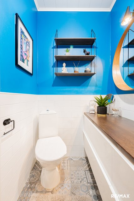 - WC-istuin, suihku, pesuallas, allaskaappi, peili, ja kylpyamme