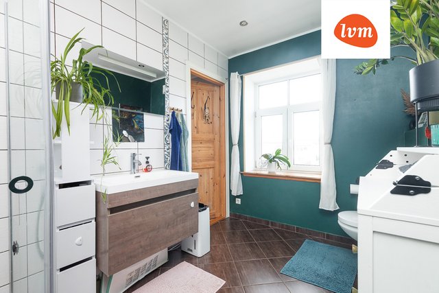 - WC-istuin, suihku, suihkuseinä, pesukone, peili, pesuallas, allaskaappi, ja lattialämmitys