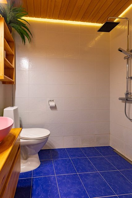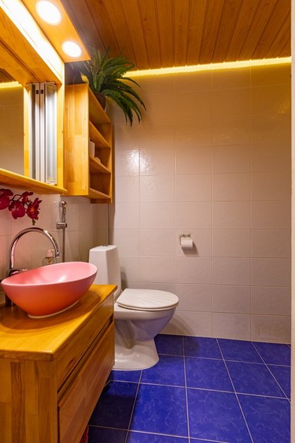 - WC-istuin, suihku, pesukoneliitäntä, pesuallas, ja peili