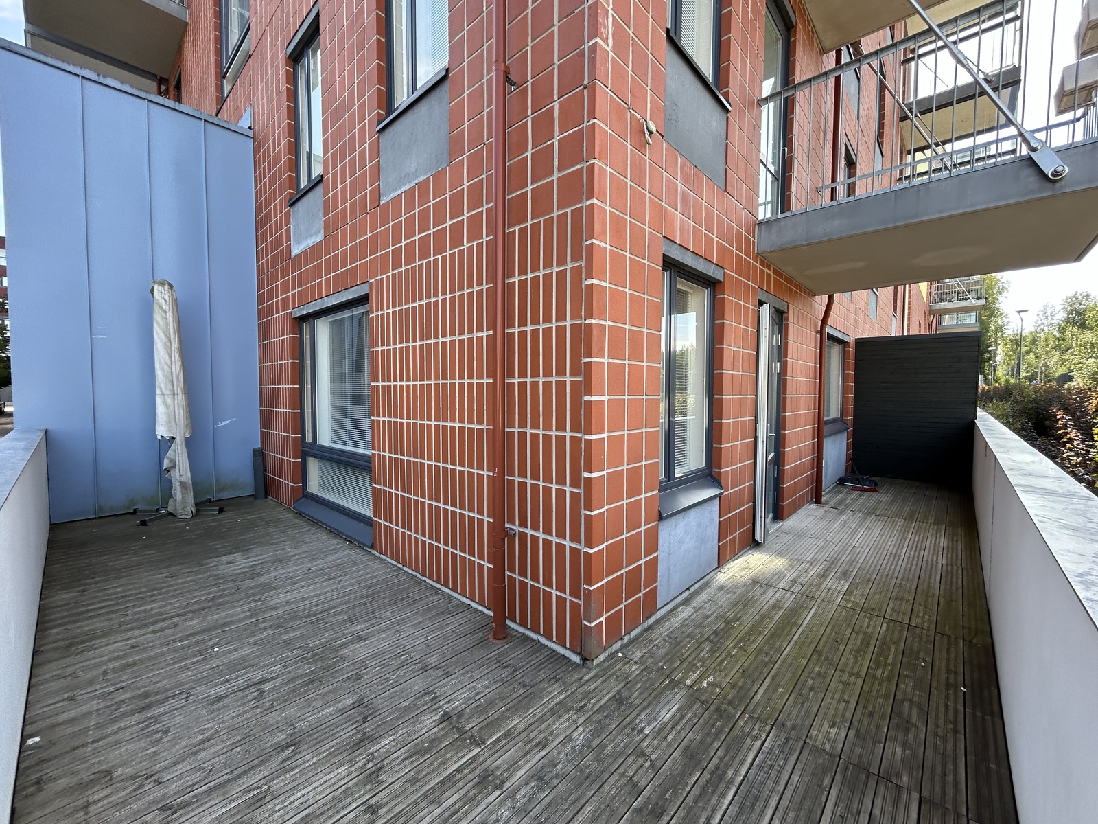 Asunnon ehdoton valttikortti on oma käynti terassille. Tämä suojaisa ulkotila toimii kuin olohuoneen jatkeena – täydellinen paikka aloittaa päivä aamukahvin äärellä tai rauhoittua illalla vilttiin kääriytyneenä.