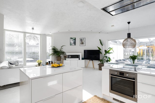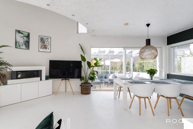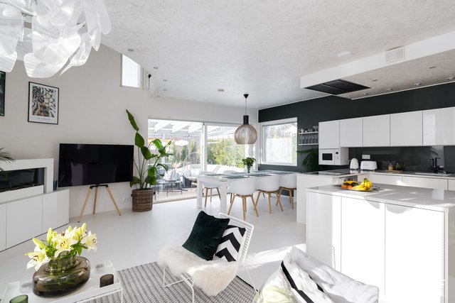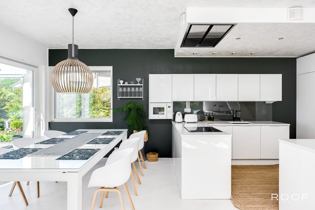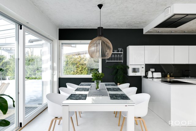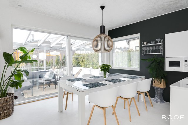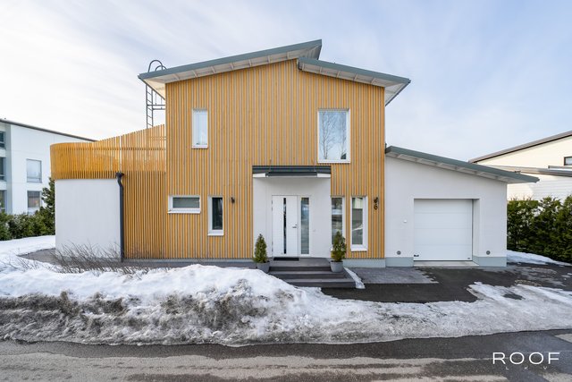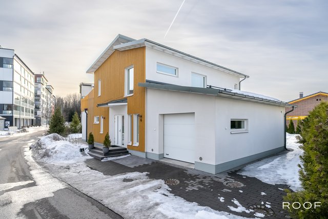 Brilliant modern four-bedroom concrete house in Kivistö, Vantaa! Built in 2015. Microcement floors, open kitchen, design sauna, glass terrace, garage. Tranquil and central location. Aurinkokivi School 700m (grades 1-9), grocery store 750m, Kivistö station 1.3 km, Kivis shopping center 1.5 km. International School of Vantaa 11 km (15-20 min drive).