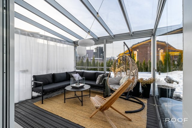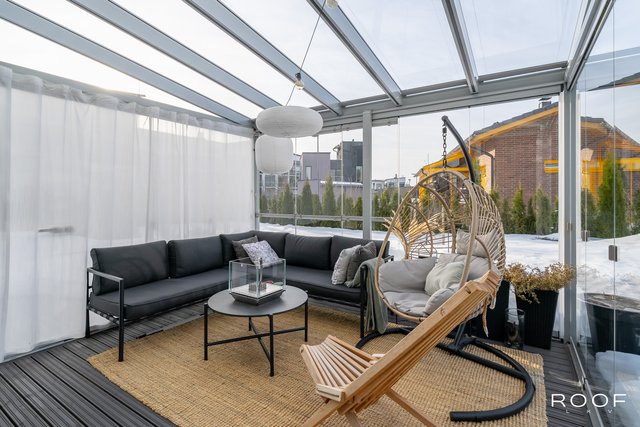 - Lasitettu terassi.