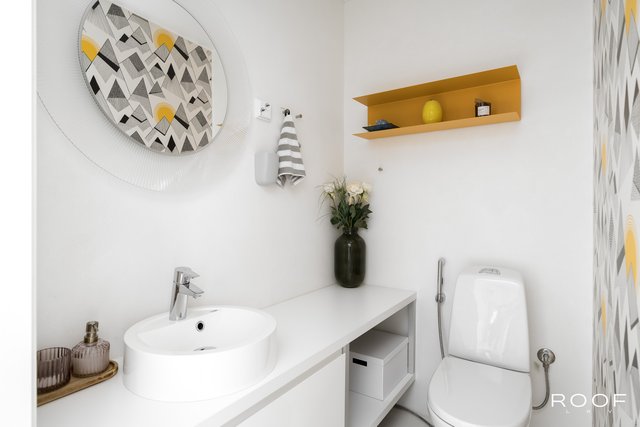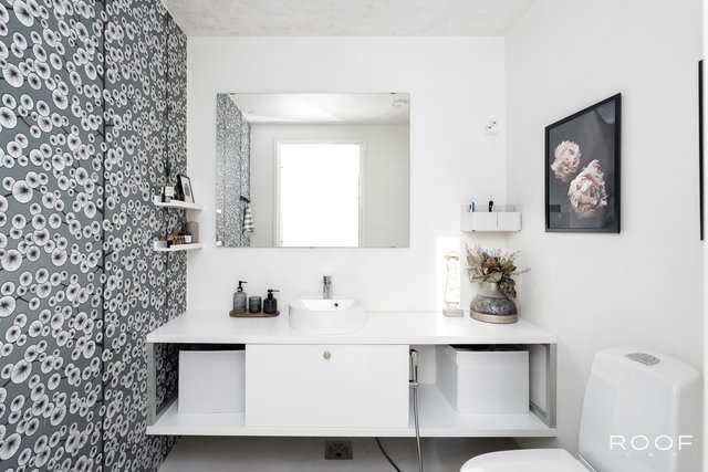 - Lattia: mikrosementti Varustus: bidee-suihku. Seinät: maalattu, tapetti.
