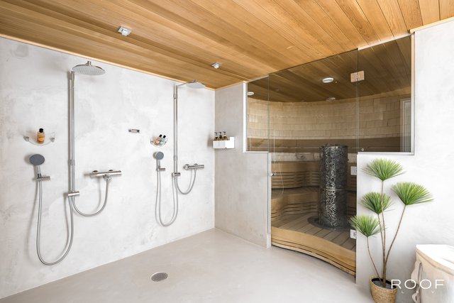 - Lattia: mikrosementti, seinät: mikrosementti Varustus: suihku.