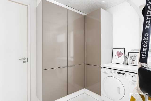 - Lattia: mikrosementti Varustus: pesukoneliitäntä. Seinät: maalattu, tapetti.