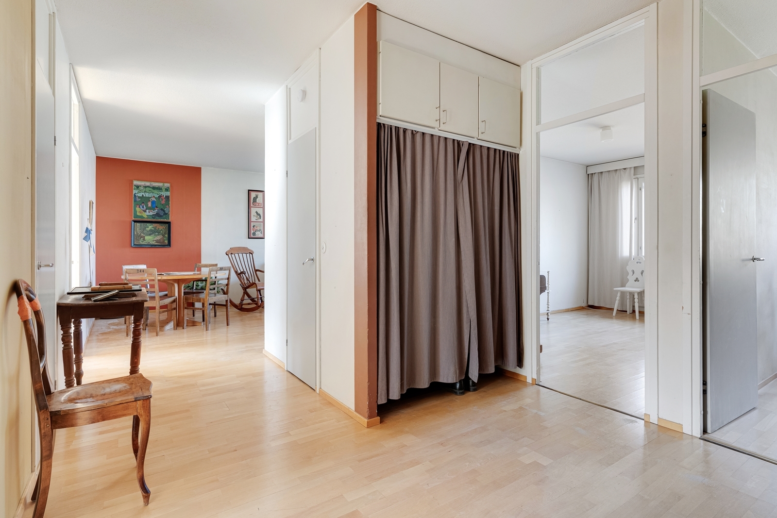 Huoneistossa on selkeä pohjaratkaisu ja tilavat huoneet. Olohuoneen yhteydessä on lasitettu parveke. Kylpyhuone ja wc on uusittu putkiremontin yhteydessä. Muuten huoneisto vaatii päivitystä.