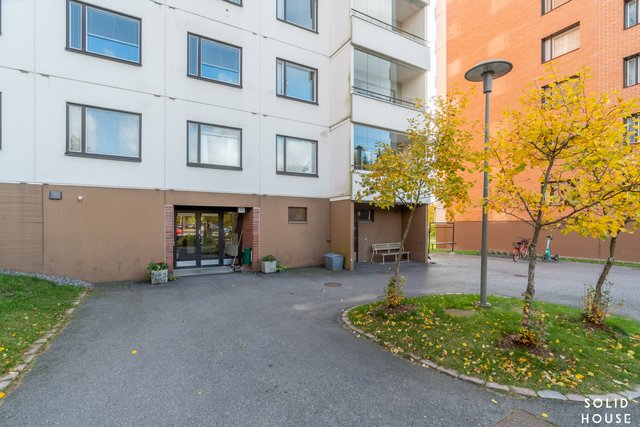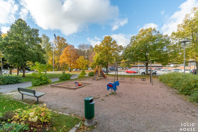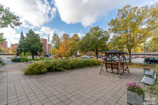 Ylimmän kerroksen kiva neliö vehreän ja rauhallisen Petreliuksen alueella.