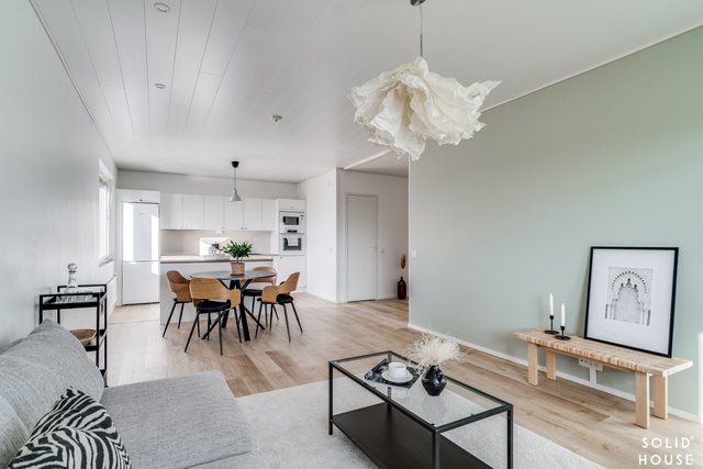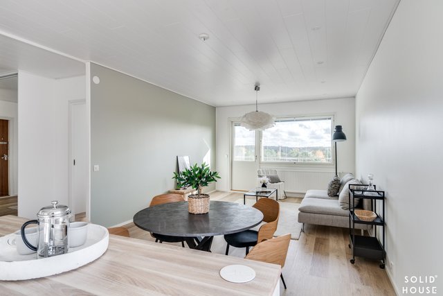 Kauniisti ja tyylikkäästi v. 2022 remontoitu vaaleasävyinen asunto, jossa isot ikkunat antavat runsaasti valoisuutta.