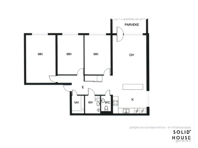 - Pinta-alaa ei ole tarkistusmitattu ja todellinen pinta-ala voi olla suurempi tai pienempi kuin ilmoitettu..