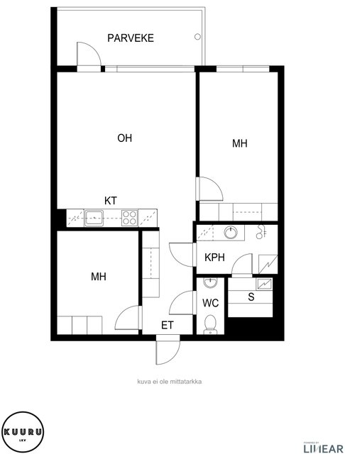 - Ei tarkistusmitattu. Pinta-ala voi siis olla edellä mainittua pienempi tai suurempi.