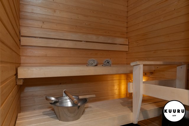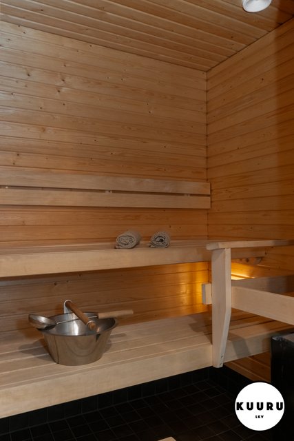 - Vaalean sävyinen sauna tarjoaa pehmeät löylyt aktiivisen päivän jälkeen.