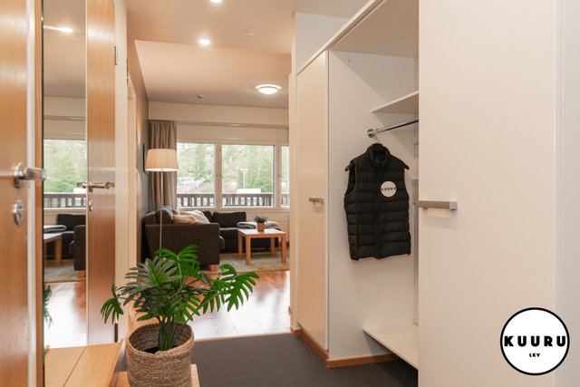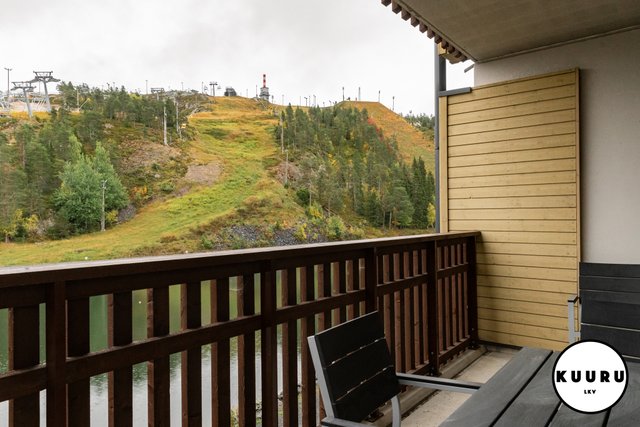 - Iso eteinen tekee kotiinpaluusta sujuvaa ja antaa reilusti tilaa harrastusvälineiden käsittelyyn. Asunnon kruunaa lisäksi suuri parveke, jolta avautuvat upeat näkymät Kaltiolammelle ja sen takana siintäville Rukan eturinteille."
