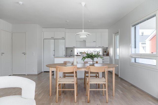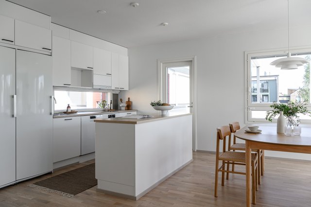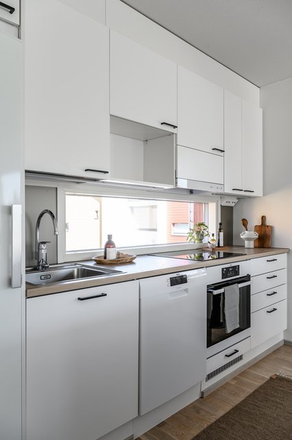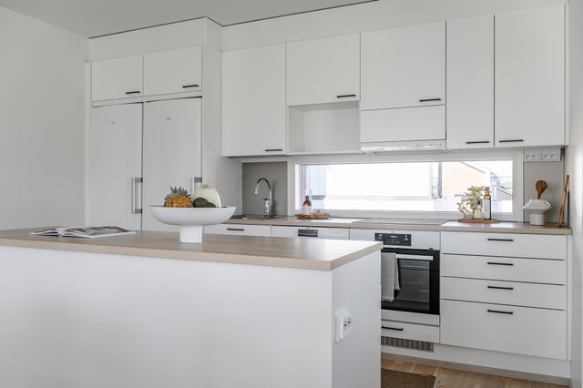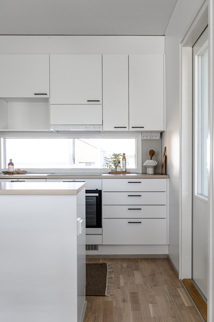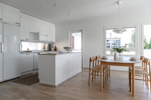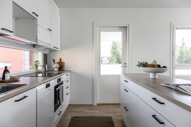 - Kaunis ja ajattomin materiaali valinnoin toteutettu keittiö löytyy kodin yläkerrasta. Keittiöstä löytyy reilusti lasku - sekä säilytystilaa.