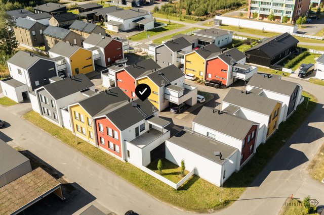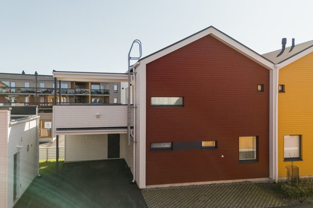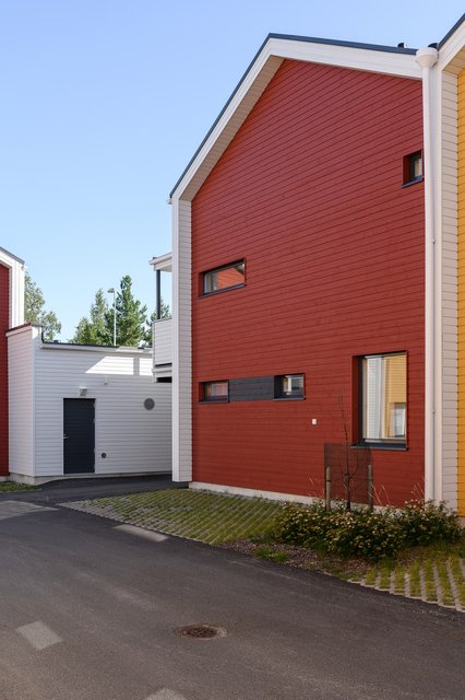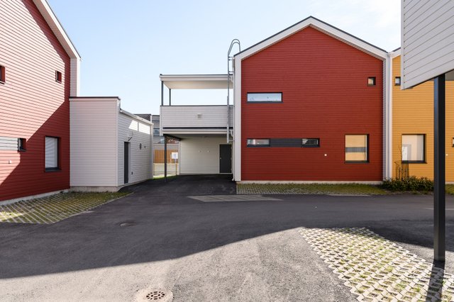 Arjen vaivattomuutta lisää kotien yhteydessä sijaitsevat autopaikat, joita tällä kodilla on kaksi. Toinen pistokkeellinen autokatospaikka ja toinen pistokkeellinen autopaikka. Autokatoksen yhteydessä ulkovarasto lisä säilytystä varten.
