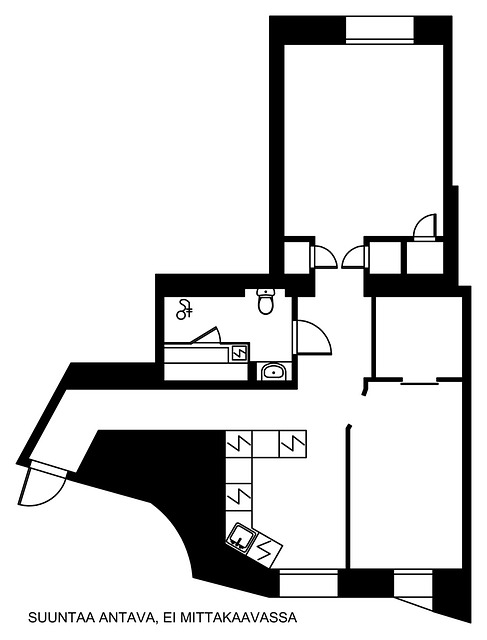 Heti vapaa kuudennen kerroksen läpitalon kaksio. Asunto käsittää tilavan olohuoneen, johon mahtuu hyvin myös ruokapöytä. Makuuhuone on hiljaisen sisäpihan puolella. Keittiössä on hyvin säilytys- ja työskentelytilaa ja keittiöön mahtuu myös pienen perheen ruokapöytä. Kylpyhuone on remontoitu perinteisessä linjasaneerauksessa 2009-2010 ja kylpyhuoneessa on jopa oma kylpyhuonesauna. Erittäin hyvin säilytystilaa: tilava vaatehuone ja kiinteitä komeroita.