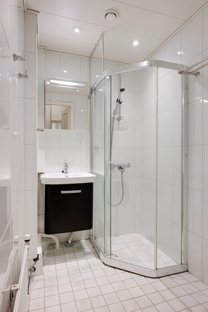 - Suihku, suihkukaappi, pesuallas, allaskaappi, pesukoneliitäntä, ja peilikaappi