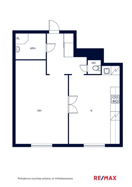Selkeä pohjaratkaisu käsittää kaksi huonetta ja avokeittiön sekä kylpyhuoneen ja erillisen WC:n. Keittiö on remontoitu vuonna 2010, jolloin keittokomero muutettiin avokeittiöksi ja asunto sai lisää avaruutta. Hyvin suunnitellussa keittiössä on runsaasti kaappi- ja laskutilaa ja kokonaisuus on säilynyt siistinä ja tyylikkäänä. Huoneiston seinäpinnat on maalattu vuonna 2023.