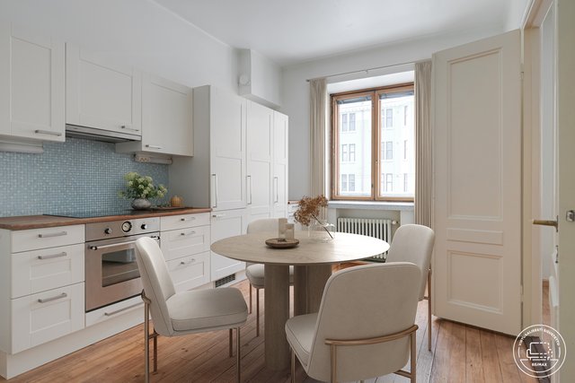 Runeberginkadulla, arvostetussa vuonna 1928 rakennetussa talossa sijaitseva 45 m²:n hyväkuntoinen kaksio tarjoaa viihtyisää asumista klassisessa kaupunkiympäristössä. Toisen kerroksen huoneisto hurmaa tunnelmallaan – alkuperäisen kauniit lautalattiat, korkea huonekorkeus, leveät ikkunalaudat sekä elegantit pariovet tuovat tilaan arvokkuutta ja ajattomuutta.