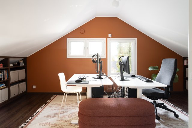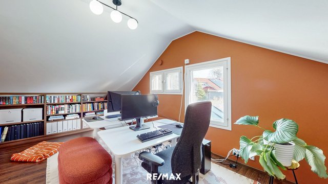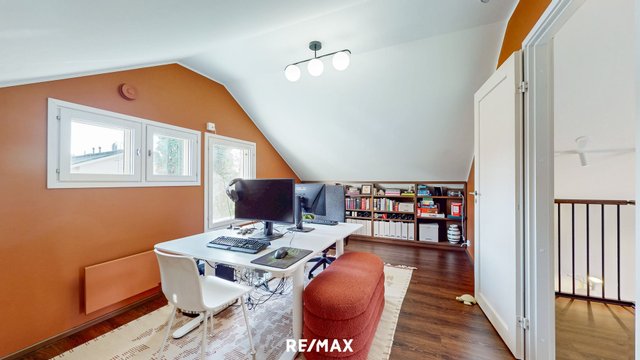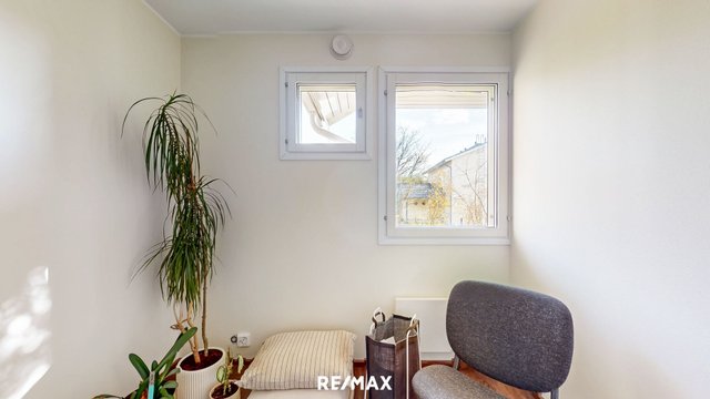 - Makuuhuoneita asunnossa yhteensä neljä isompaa, yksi pieni viher/työ huone sekä alakerrassa toinen olohuone (takkahuone) mahdollisuus tehdä lisä makuuhuone.