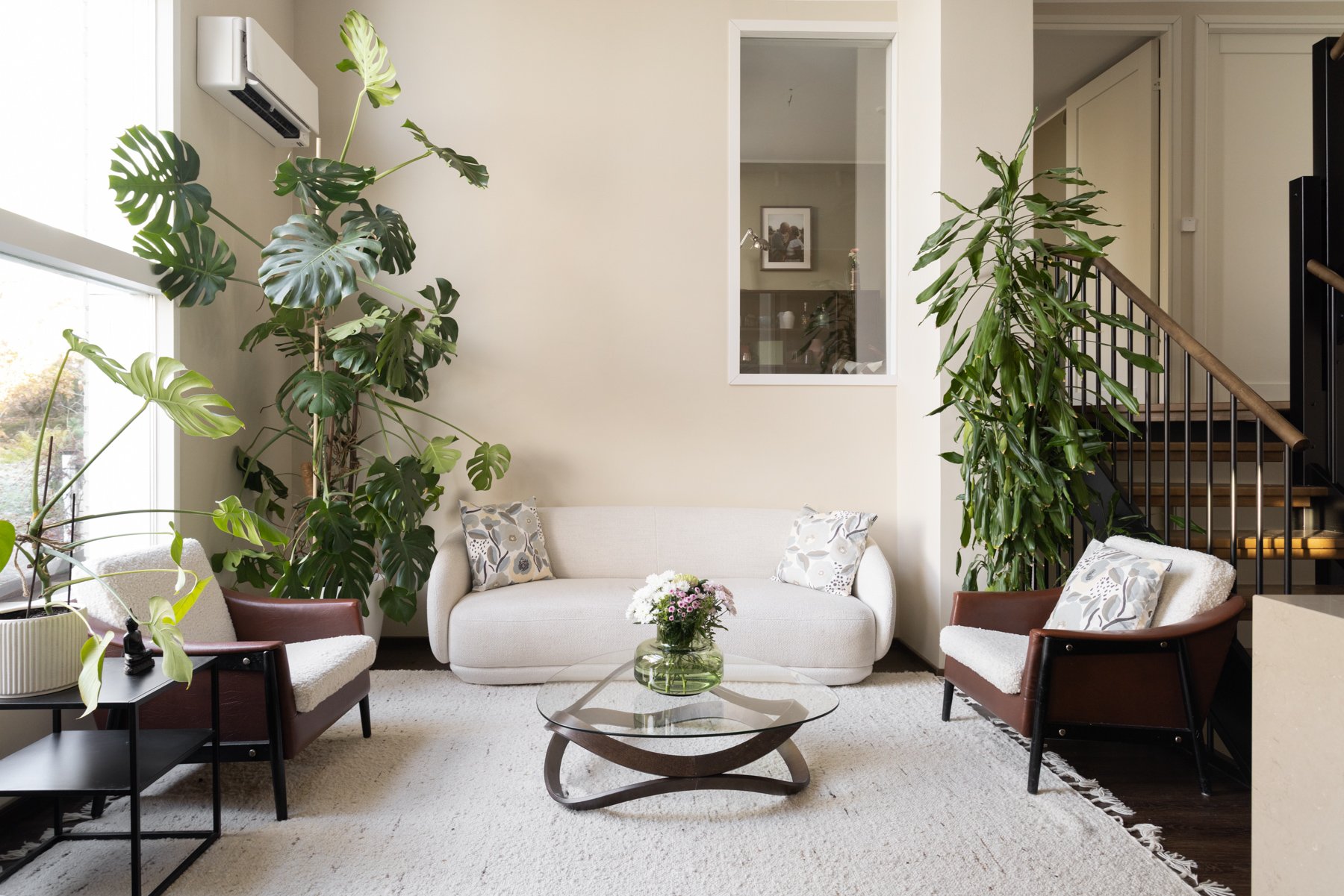 Asunnossa on viisi makuuhuonetta, joista yksi toimii erinomaisesti työ- tai viherhuoneena. Alakerrassa on takkahuone, joka voi toimia toisena olohuoneena tai lisämakuuhuoneena. Moderni avokeittiö kivitasoineen ja saarekkeineen on varustettu laadukkailla kodinkoneilla, mikä tekee ruoanlaitosta nautinnollista.