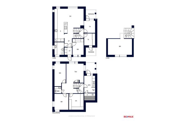 - 2 kpl wc, toinen wc kodinhoitotilan yhteydessä ensimmäisessä kerroksessa ja toinen erillinen wc alimmassa kerroksessa.