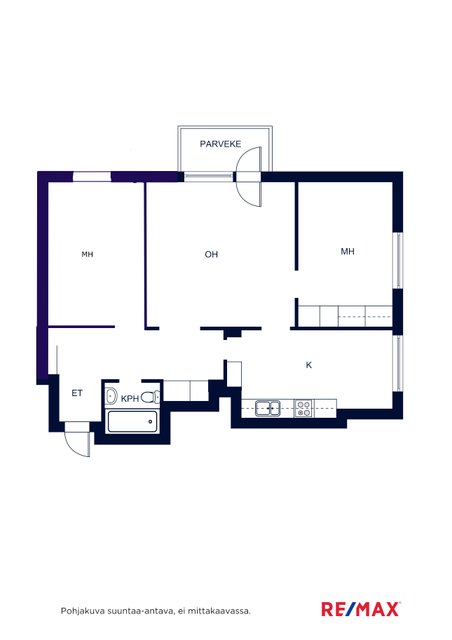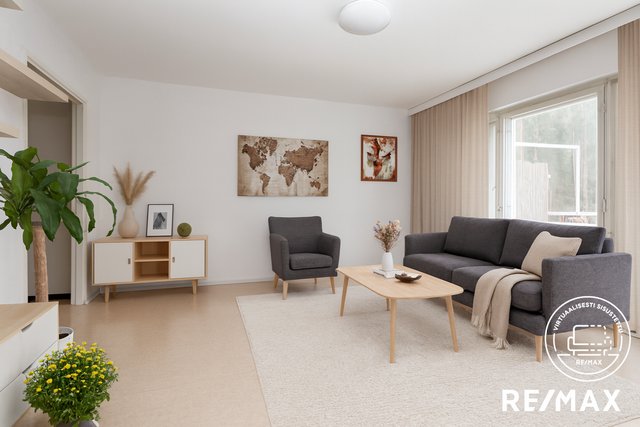 Asunnossa on kaksi makuuhuonetta, tilava olohuone sekä keittiö, josta löytyy kaikki tarvittavat kodinkoneet. Parveke tarjoaa mukavan lisätilan, jossa voi nauttia vaikkapa aamukahvista.