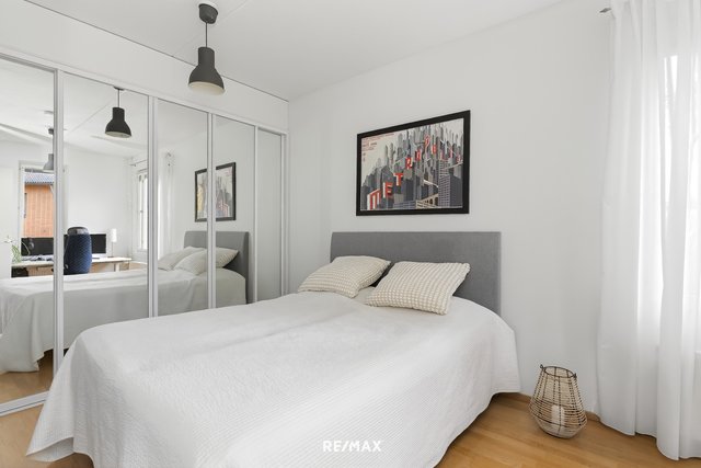 - Suuremmassa makuuhuoneessa ikkunat kahteen suuntaan, tilavat liukuovikaapistot. Seinät maalattu ja lattia parkettia. Pienemmässä makuuhuoneessa kaapistot, seinät maalattu, lattia parkettia.
