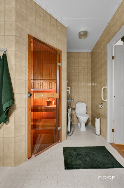 - Pesukoneliitäntä, kuivauskaappi, lattialämmitys, ja wc
