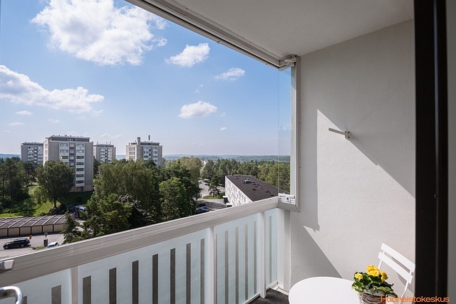 - Merinäköala, 8:n kerroksen parvekkeelta näkymä etelään ja 9:n kerroksen parvekkeelta itään.