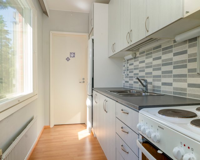 Vuonna 1974 valmistuneen talon kolmannessa kerroksessa sijaitseva asunto (hissi on) on kohtalaisessa kunnossa, ja keittokomero on remontoitu vuonna 2015. Asuntoon kuuluu parveke, jossa voit nauttia rauhallisista hetkistä ja luonnon läheisyydestä suora näkymä metsään.