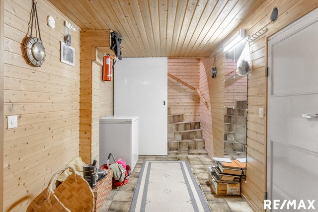 Kellarikerrokseen rakennettu sauna sekä kylpyhuone. Kellarikerroksen remonttiin ei ole koskaan haettu rakennuslupaa tai tehty lopputarkastusta. Rakennusluvan sekä lopputarkastuksen teettäminen sekä mahdolliset remontti/purkutoimenpiteet jäävät ostajalle.