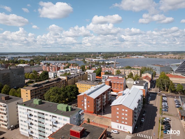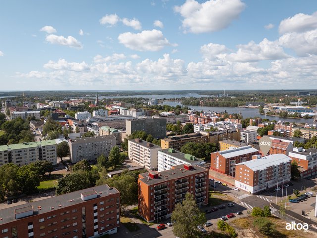 Valoisa ja hyväkuntoinen kolmio omalla saunalla, sijaitsee vuonna 1994 valmistuneen kerrostalon kolmannessa kerroksessa, josta näkymät suuntaavat Satamaan päin ja merikin pilkistää. Kehittyvä Satama-alue, jossa Satama-areena ja Xamk -kampus sijaitsevat ihan vieressä. Asunnossa on oma sauna ja tilava parveke, joka kutsuu nauttimaan meri-ilmasta.