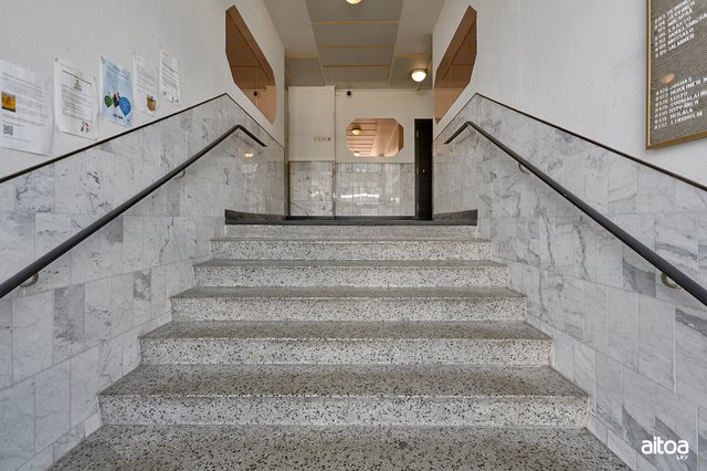 - Takapihan kautta on esteetön kulku käytävään ja hissille.