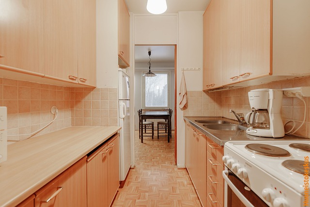 - Keittiön katto maalattu. Keittiön kaapit pyökinsävyiset. Ovet ja vetimet uusittu jossain vaiheessa. Kaappien runko näyttäisi olevan alkuperäinen. Erillinen ruokailutila keittiön päässä.