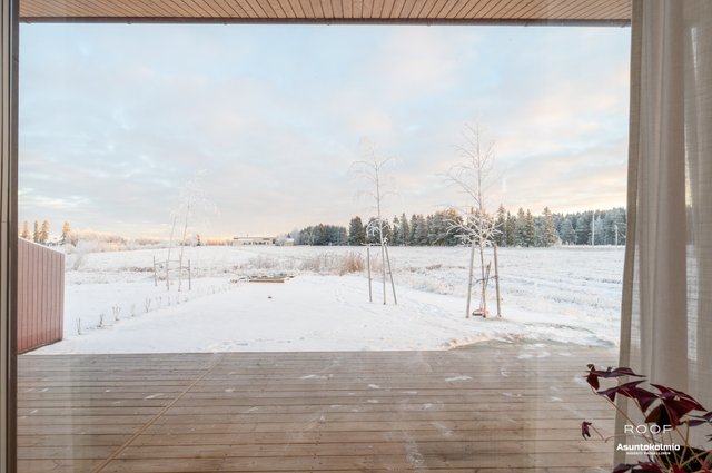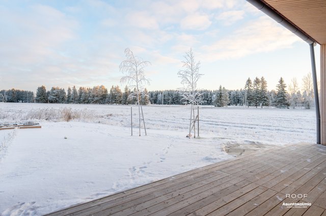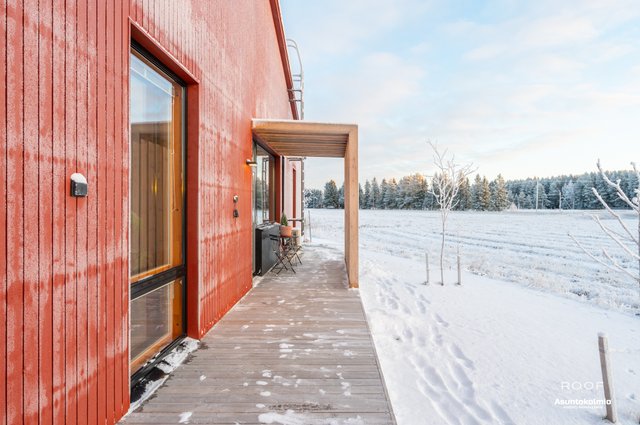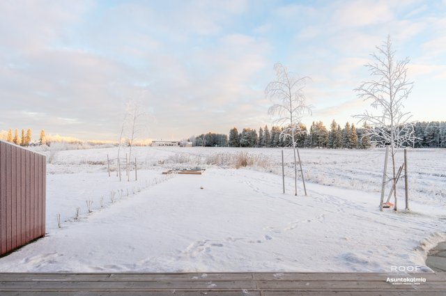 Kuitenkin parasta tässä kodissa on sen sijainti. Takapihalta on seuraaviin rakennuksiin matkaa satoja metrejä, ja avoin peltomaisema aukeaa pitkälle horisonttiin. Oma tontti on jaettu hallinnanjakosopimuksella, ja asuminen vastaa käytännössä omakotitaloasumista. Kiinteistölle on kytketty myös valokuituliittymä, joten etätyöt sujuvat vaivattomasti.