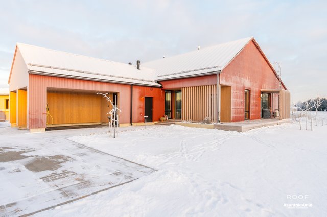 - Kytketty talousrakennus, jossa autokatos, pyöräkatos sekä lämmin varasto/tekninen tila