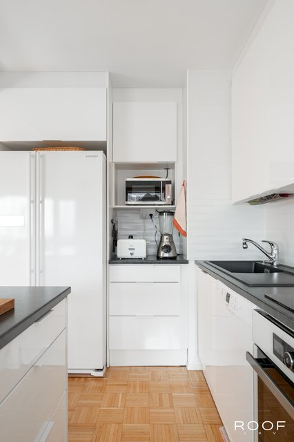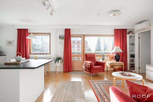 Asunto on hyvässä kunnossa ja varustettu käytännöllisillä ratkaisuilla, kuten ilmalämpöpumpulla, joka tuo mukavaa viileyttä ympäri vuoden. Keittiössä on modernit kodinkoneet ja saareke, joka tarjoaa lisää säilytystilaa. Kylpyhuoneessa on pesukoneliitäntä ja sauna tarjoaa rentouttavat löylyt kiireisen päivän päätteeksi.