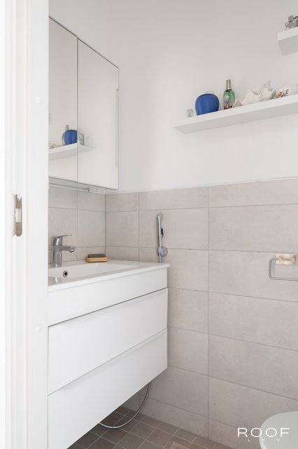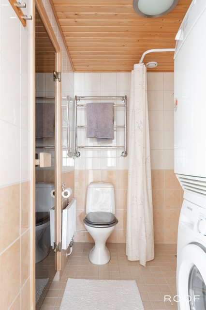 - Suihku, wc-istuin, pesukoneliitäntä, pesuallas, ja peilikaappi