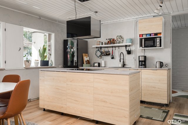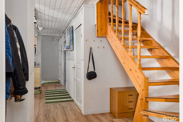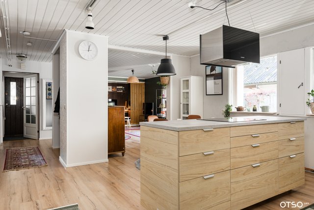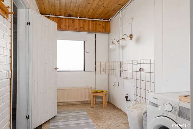 - Vaatehuone, kaapistot, seinäkaapit, lämmin ulkovarasto ja autotalli