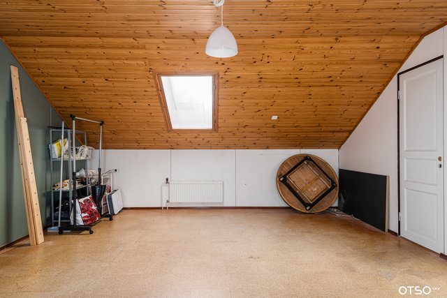 Äkillisen tilantarpeen yllättäessä talon yläkerrasta löytyy runsaasti rakentamatonta tilaa, joka tarjoaa loistavat puitteet esimerkiksi lisämakuuhuoneille, työtilalle tai harrastehuoneelle. Vain mielikuvitus on rajana!