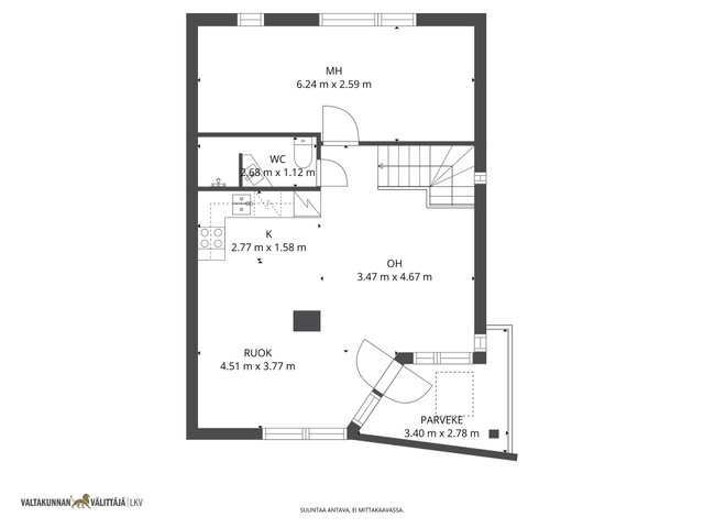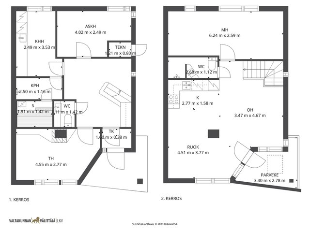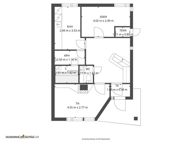 - Ei tarkistusmitattu. Pinta-alat saattavat tämän ikäisissä kohteissa (yhtiö rekisteröity ennen 01.01.1992) poiketa olennaisestikin asuinrakennusten nykyisten mittaustapojen ja standardien (SFS 5139) mukaan laskettavasta asuintilojen pinta-alasta. Pinta-ala voi siis olla edellä mainittua pienempi tai suurempi.