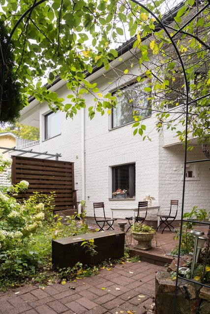 Talo sijoittuu päättyvän kadun viimeiselle tontille joten pihapiiri on todella turvallinen ja rauhallinen. Piha-alue on suurehko ja tarjoaa viherpeukalolle vertaansa vailla olevia mahdollisuuksia. Autokatoksesta löytyy autopaikka ja toisenkin auton pysäköinti onnistuu pulmitta.