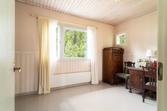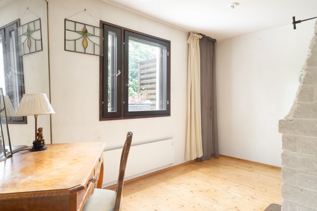 - Alkerrassa makuuhuone ja takkahuone jota voi myös käyttää makuuhuoneena. Yläkerrassa yksi suurempi makuuhuone.