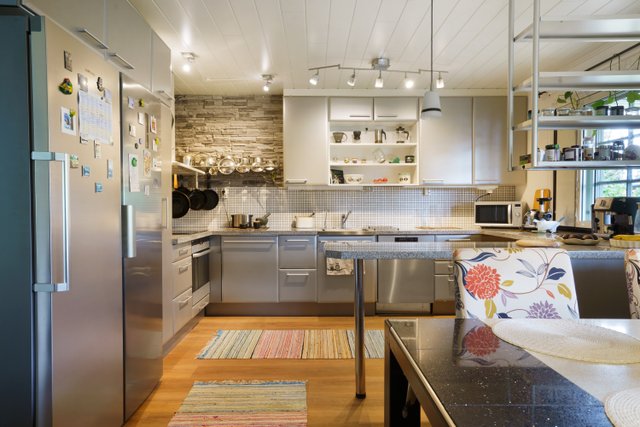 - Jääkaappi, erillinen pakastin, erillisuuni, liesi, ja astianpesukone