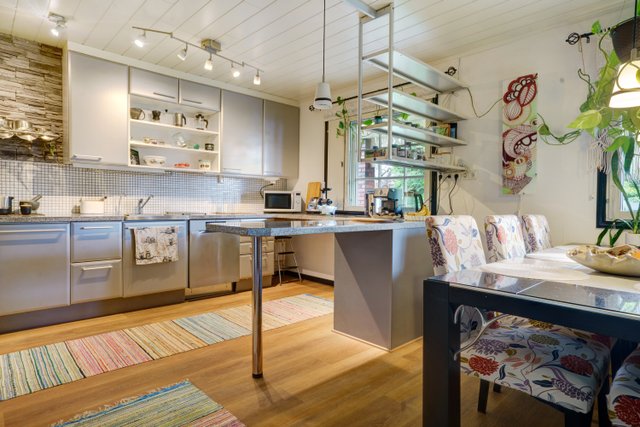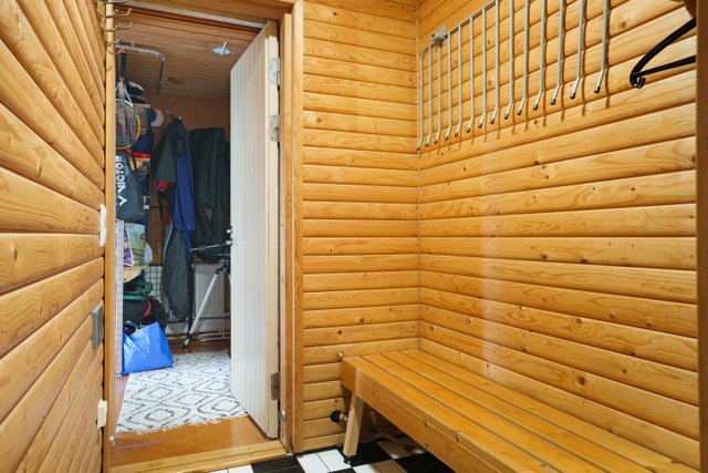 Tilava keittiö, jossa kaappi-, laatikko ja tasotilaa on reilusti. Keittö on varustettu nykyaikaisilla kodinkoneilla, kuten erillisellä jääkaapilla ja pakastimella sekä astianpesukoneella. Kylpyhuoneessa on mukavuutta lisäävä lattialämmitys ja sauna on päivitetty vuonna 2013. Lisäksi talosta löytyy erillinen wc ja kylpyhuoneesta käynti suoraan terassille.