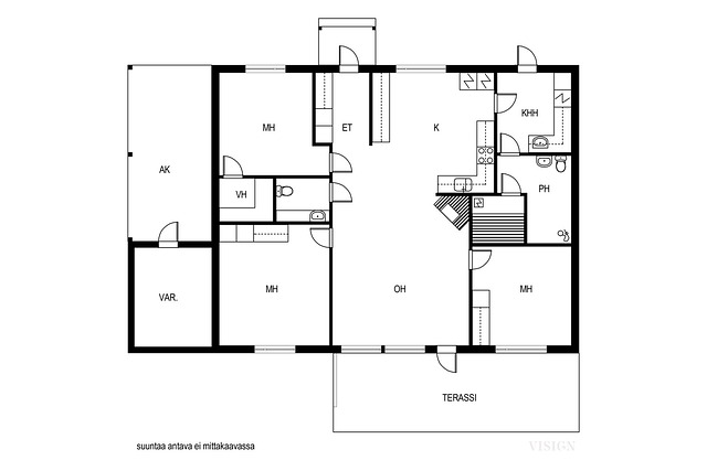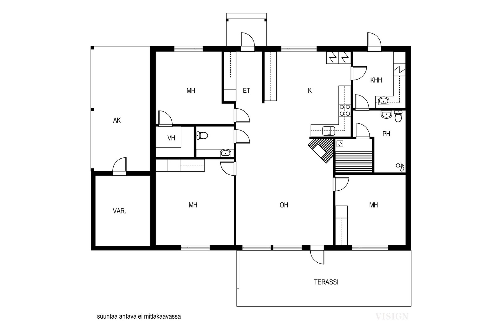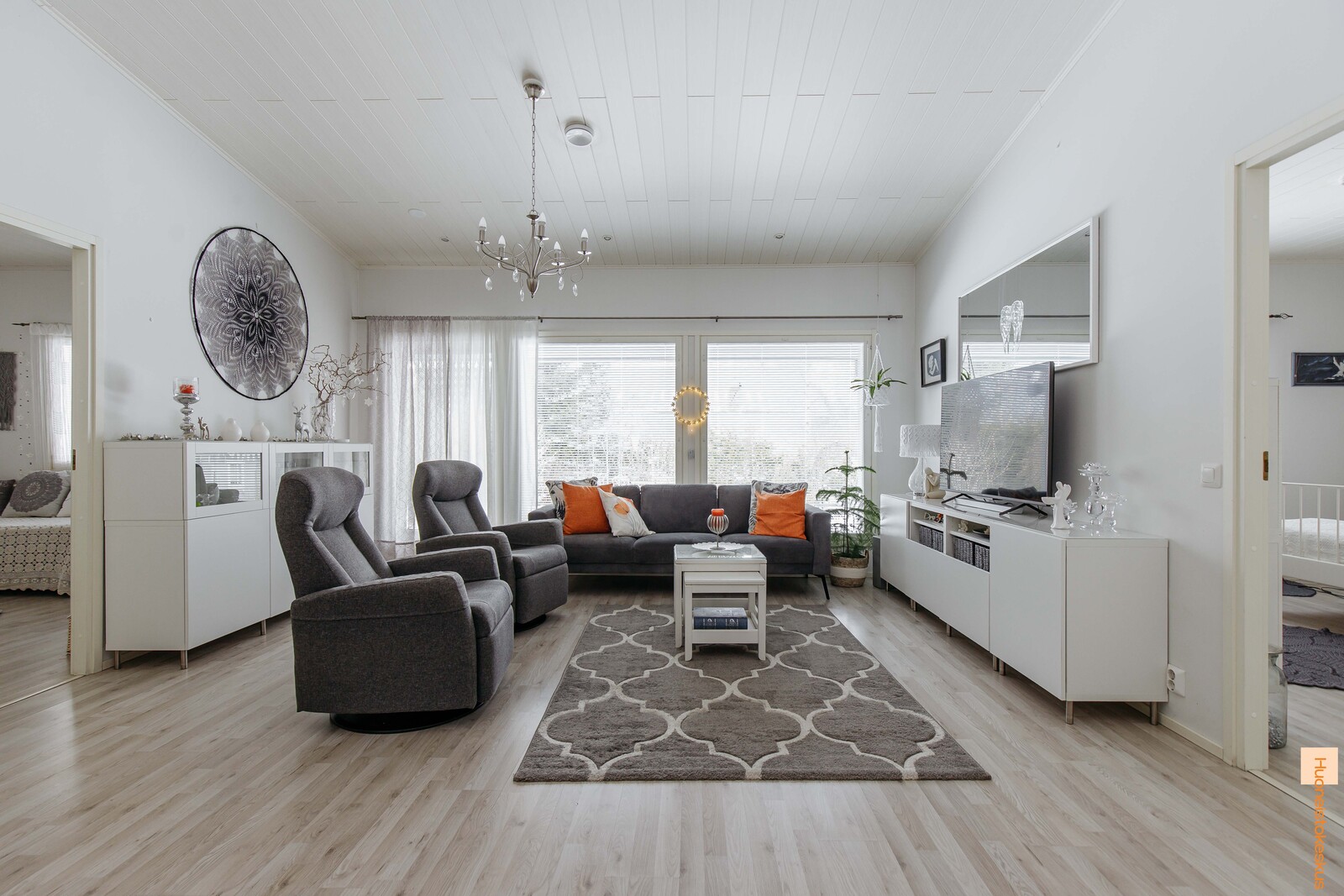 Yhteen tasoon rakennettu huoneisto, jonka korotettu sisäkatto lisää miellyttävästi tilan tuntua. Suuri ja valoisa varaavalla takalla varustettu olohuone, josta yhteys tilavaan keittiöön. Olohuoneesta kulku länsisuuntaiselle, suurella terassille. Erillinen wc ja kodinhoitohuone lisäävät asumismukavuutta ja sujuvoittavat arkea. Suojaisalla takapihalla nautit aurinkoisista kesäpäivistä.