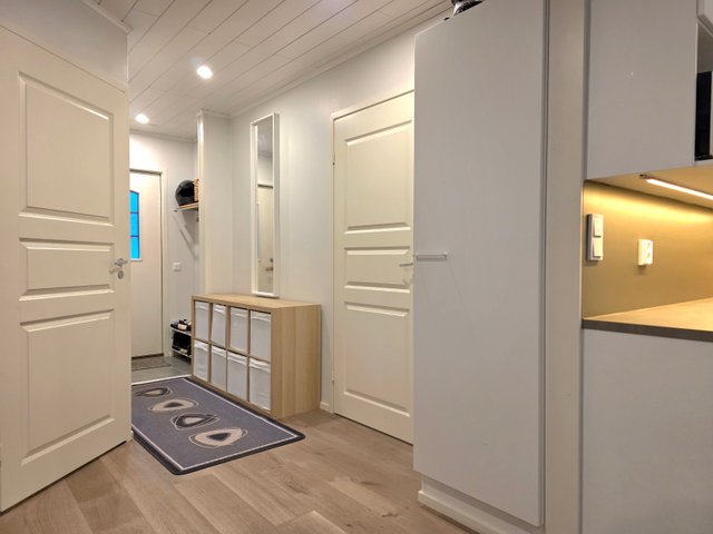 Asunnossa hyvä ja avara pohjaratkaisu. Avokeittiö, joka avautuu olohuoneeseen. Olohuoneen ja keittiön välistä käynti katetulle terassille, joka etelä, länsi suuntaan. Oma näppärä piha-alue, joka rajoittuu metsäkaistaleeseen. Varasto ja autopaikka löytyy myös.