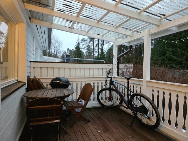 - Takapihan puolella etelä, länsi suunnassa katettu terassi.
