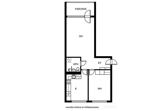 2 h, k, kph, lasitettu parveke (Yj. 2h+k)