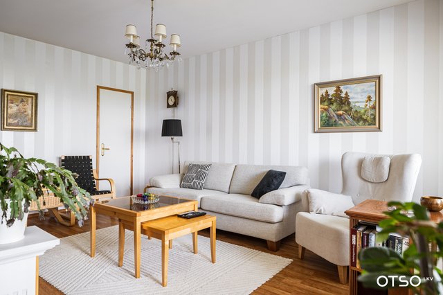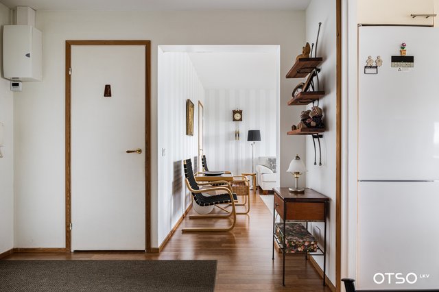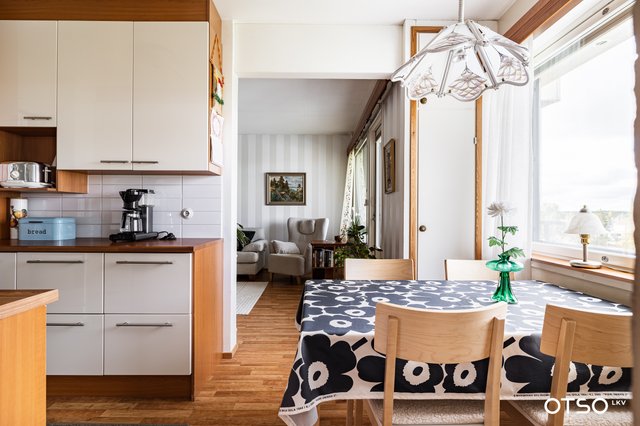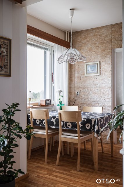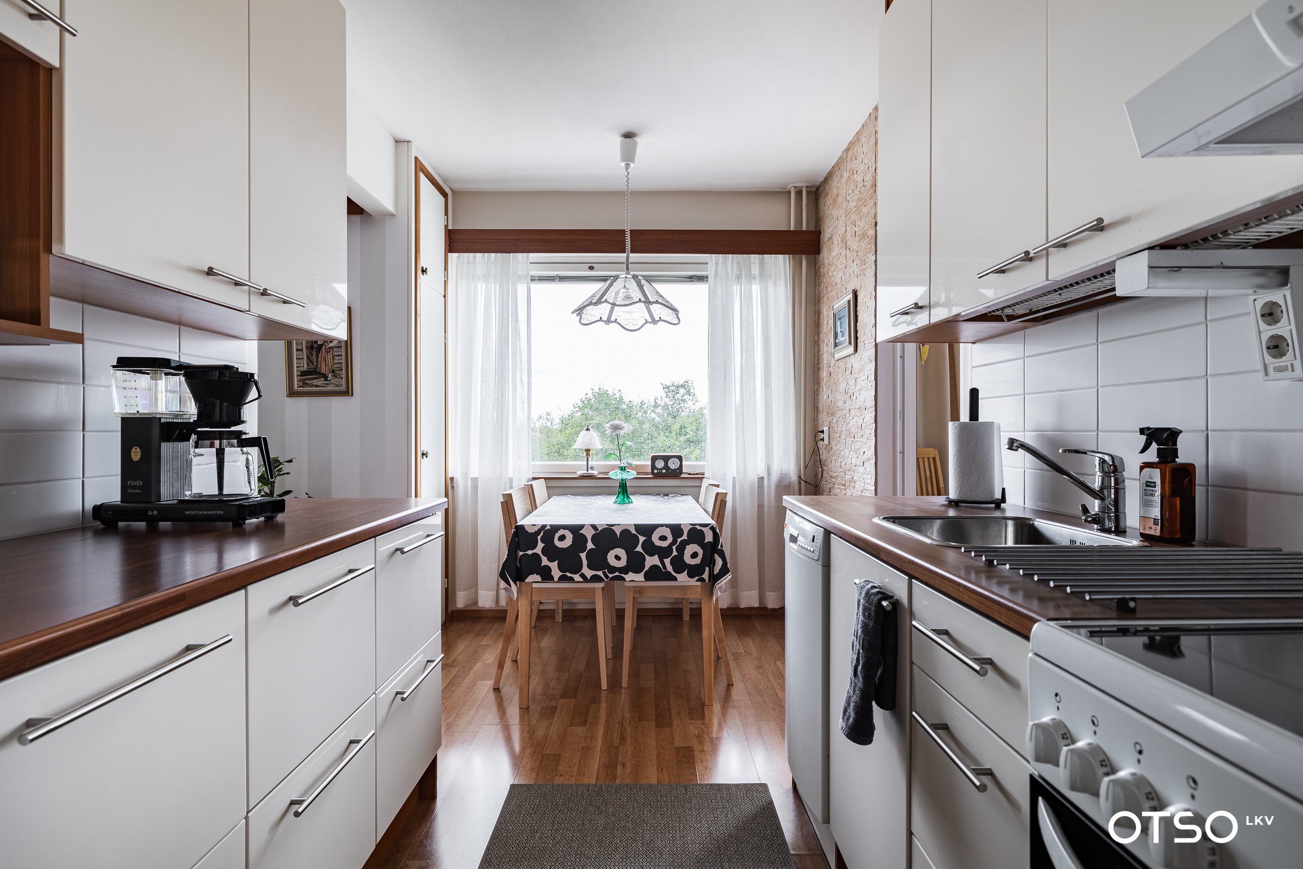Linjasaneeraukseen yhteydessä kylpyhuoneremontin lisäksi asuntoon on tehty keittiö- ja pintaremonttia.